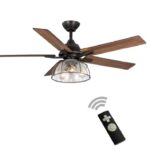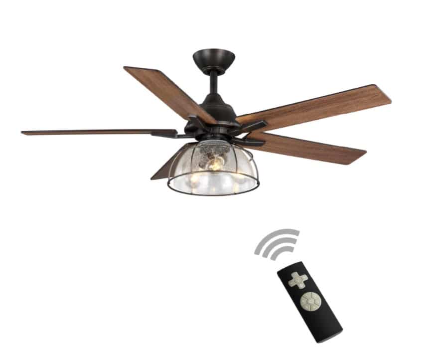 Gorgeous glass work meets flawless vintage woodwork and ironwork in the one-of-a-kind statement piece in Home Decorators Collection newest fan, the Casun. This 52” ceiling fan is designed with aged iron and 5 plywood blades, which are reversible. The reversible wood blades, featuring a weathered brown or gray distressed finish, add the final touch of detail, offering customers a new way to define their living space. The rustic industrial light kit with seeded glass shade and (3) LED filament lamps is a focal point of the design. The 3 LED filament lamps, totaling 1650 lumens, help to deliver a beautiful warm light (2700K), setting the mood for any living space. If you are looking for a new farmhouse styled fan to style your living space, enjoy the latest addition, the Casun, from Home Decorators Collection.
