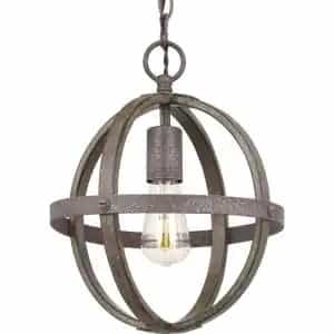 Rustic yet refined, this Keowee mini pendant embraces a sophisticated, spherical form. The frame features an open design and is complemented with an Artisan Iron finish and painted distressed elm wood accents. Mini pendants can be displayed singularly or in groups of 2 or more in a variety of areas – including over kitchen islands, dining room tables, entryways and foyers and more.