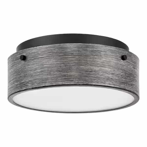 The Huntmoor collection of Flush Mounts and Pendants from Home Decorators Collection features sleek modern styling and finishes. This overhead flush mount ceiling light fixture comes in Matte Black, with a metal shade finished with an Ebony Wood grain and an Etched Glass diffuser for a soothing ambient light. Flush mount lighting is perfect for entryways, hallways, bedrooms, bathrooms, utility rooms and so much more. This ceiling light uses 2 medium-based incandescent or LED bulbs (not included) and is suitable to install in dry or damp indoor areas of your home.