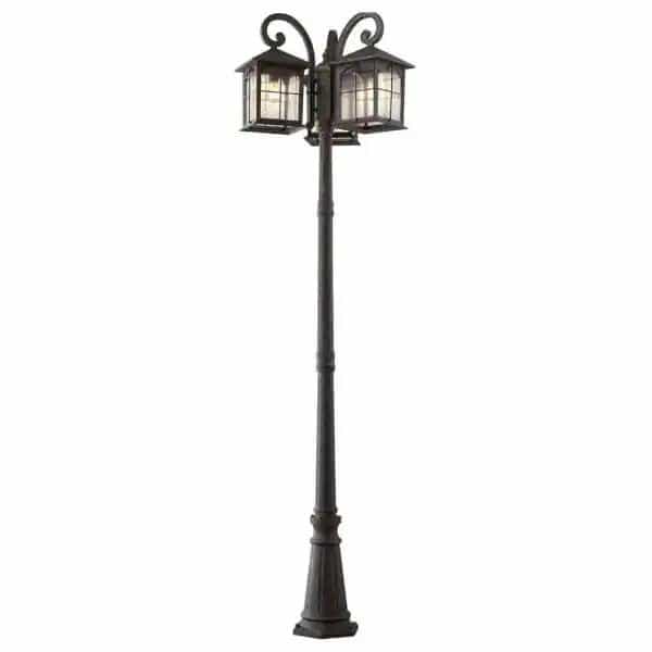 Bring ample illumination, added safety and a touch of character to your driveway or pathway with the Brimfield Outdoor Post Light from Home Decorators Collection. Elegantly crafted of cast aluminum in a rustic street-lamp design, this vintage find features an aged iron, weather-resistant finish that inhibits rust and corrosion, while the clear, seedy glass shades and 3-head design provide plenty of warm, bright illumination. As stylish as it is durable, this outdoor post lamp makes a stunning focal point on its own or in pairs and coordinates beautifully with other items from the Brimfield collection to create a complete, polished look for your home.