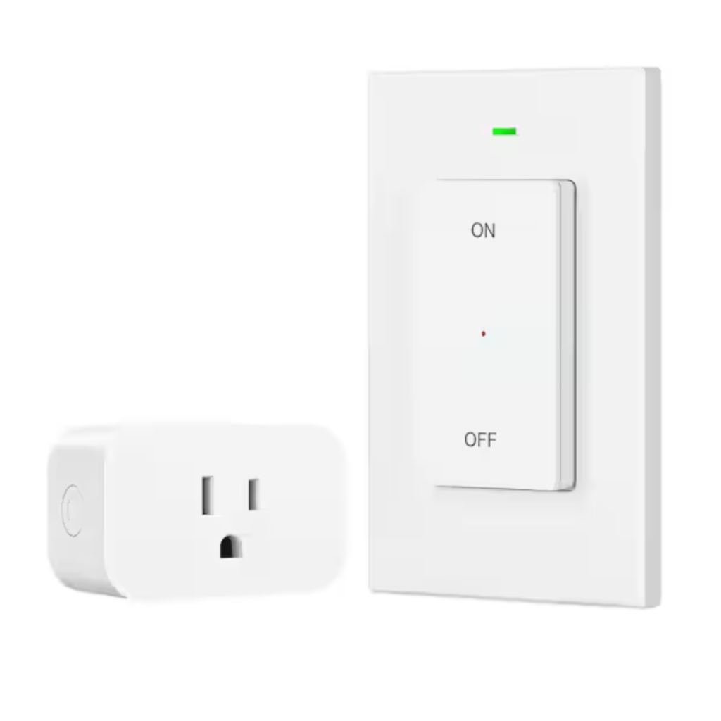 - 100 ft RF Range & Compact Design: The strong RF signal works through walls and doors without interference, with up to a 100 ft range in open areas. Compact and FCC certified, this wireless switch leaves the upper outlet available and can also be operated manually.