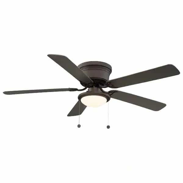 Make a room cooler with this Hugger 56-in. LED ceiling fan. Great for small rooms, it includes five reversible blades with a seasoned wood finish on one side and espresso on the other. A multi-capacitor allows maximum airflow. To complete the look, it offers an opal frosted opal dome shade and an espresso bronze finish.
