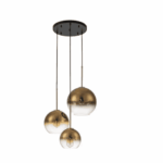 HUOKU PD1073551 Auto 3-Light 20.5 In.W Matte Black and Gold Chandelier with Mirrored Polished Gradient Glass for Staircase Living Room