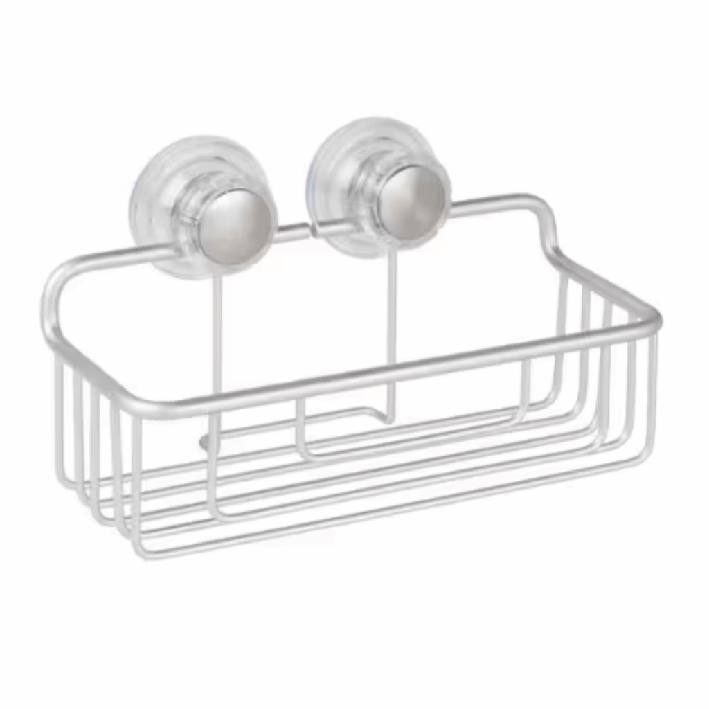 The InterDesign Metro Aluminum Suction Basket features Turn-N-Lock suction technology for a strong and secure hold. Simply press firmly and turn the knobs clockwise until they stop for easy, tool-free installation. Designed to adhere to smooth, clean surfaces like tile, glass, fiberglass, and metal, this storage basket is perfect for keeping shower essentials organized. Made from premium-quality aluminum, it resists rust to maintain its sleek appearance for years.