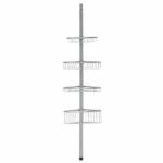 Organize in style with the York Tension-Pole Shower Caddy in Powder-Coated Silver. The caddy boasts three position-able baskets of varied sizes and one soap dish with washcloth bar, making a home for just about any bath product. The caddy’s lustrous silver finish adds a stylish touch and the wire grid design eases drainage and cleaning. The tension-pole format keeps the caddy in place without damaging surfaces thanks to non-skid/non-scratch feet.