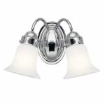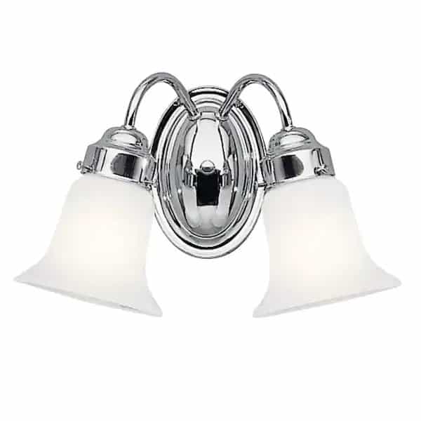 The KICHLER 13.5 in. 2-Light Chrome Vanity Light features a modern design that accentuates any bath decor. It comes with 2 incandescent bulbs that offer optimal illumination. This vanity light can be mounted either with bulbs facing upwards or downwards as per your preference.