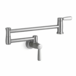 This wall-mount pot filler faucet features an articulating swing spout with a 23-3/16 in. spout reach, offering convenience for filling large pots directly on or near the stovetop. Its traditional styling ensures it complements a wide range of kitchen decors and coordinates well with your existing fixtures.