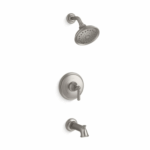 Inspired by classic design, the Capilano Tub/Shower faucet reflects vintage styling through decorative flairs and spherical detailing. This bath/shower faucet trim includes a multifunction showerhead, Rite-Temp pressure-balancing valve, single lever handle and bath spout.