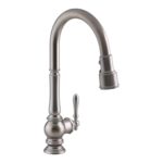- Three‑function pull‑down sprayhead provides Sweep spray, BerrySoft spray, and an aerated stream for cleaning, rinsing, and filling