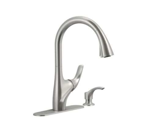 With subtle lines emanating from its handle, the Trielle pull out kitchen faucet brings a touch of glamour to contemporary design. DockNetik technology secures spray head in place through our signature magnetic docking system. 2-function spray head features stream and Sweep, a wide forceful spray that makes cleanup easier, to facilitate all the various tasks of the kitchen space.
