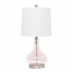 Add some charm to your room as you light up this stylish glass table lamp. The rippling texture across the transparent colored glass base balances perfectly beneath a tapered fabric shade. Soft and delicate for a nursery, yet sophisticated enough to flourish in your living room, bedroom, or foyer.