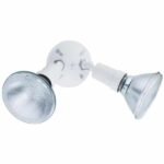 The Lithonia Lighting 2-Lamp Outdoor Floodlight has a sturdy, weather-resistant cast-aluminum housing and twin adjustable heads. Ideal for walkways, patios, and play areas creating an inviting exterior space as well as providing safety and security. It has a white finish and is designed to connect easily to the junction box. Eave or wall-mount only.