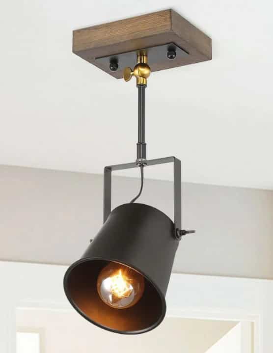 Invigorate your ceiling lighting with the 1-Light Modern Farmhouse Track Lighting Head Black Bronze Wood Wall Sconce Pendant Light Head Spotlight Ceiling Lamp by LNC. This rustic industrial metal track fixture features adjustable light head/multi-directional lamp head that offers you maximum flexibility and provides light to difficult places where light does not reach, with a distressed hand-crafted solid wood canopy that gives the whole appearance of a quaint, original character. As a plus, the ceiling lamp could be converted to a wall-mount lamp. The perfect accent light allows the decor characteristics and functionality to be the focal point of the space. This 1-light track light head/kit brings timeless beauty to living room, dining room, study, stairway, hallway, bar, foyer, hall, and more. Notices: WE SUGGEST LIGHT INSTALLATION IS DONE BY A LICENSED ELECTRICIAN.