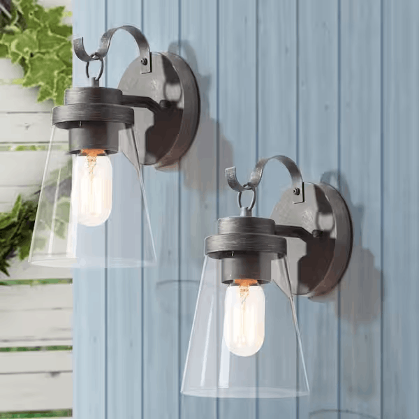 These LNC Antique Bell Wall Sconces (two-pack) add rustic flair to your homes exterior. They feature a gray/black finish with clear glass for industrial style. These outdoor lights are also weather-resistant, perfect for use on your porch or patio.