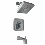 This shower trim kit blends contemporary curves with sleek, squared details for a stylish upgrade to any bathroom. The squared showerhead offers a modern aesthetic, while the chrome-style finish ensures broad compatibility with a range of décor styles. Complete with a lever handle and tub spout, this set pairs design flexibility with dependable performance.