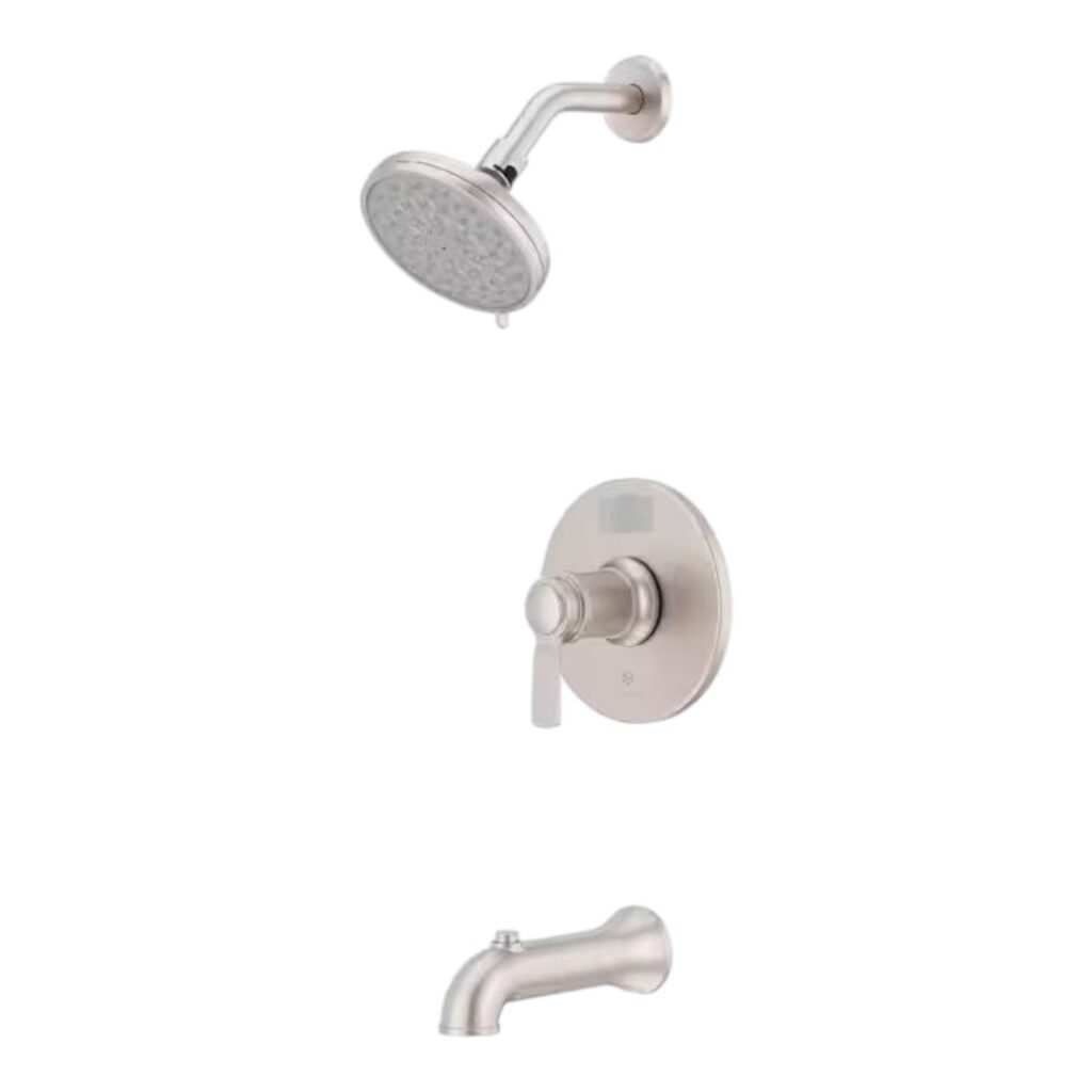 Includes shower head, valve handle, and tub spout