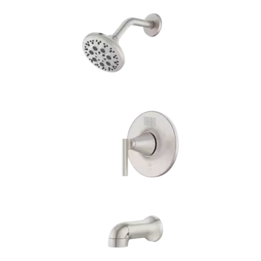 - Complete tub and shower trim kit – Includes shower head, valve handle, and tub spout; designed for 3-hole installation with pressure-balanced valve and cartridge