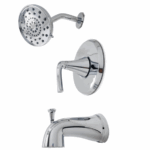 - TUB AND SHOWER TRIM KIT – Includes shower head, valve handle, and tub spout; 3-hole installation; includes pressure-balanced valve and cartridge; advanced ceramic disc valve technology will never leak; shower head features brass ball joint.