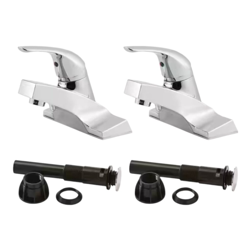 This faucet 2-pack offers a practical solution for kitchens, bathrooms, and utility spaces, combining superior design with everyday value. Finished in polished chrome, each faucet features durable metal construction and includes a push-and-seal drain system for quick, tool-free installation. Ideal for professionals and homeowners alike.