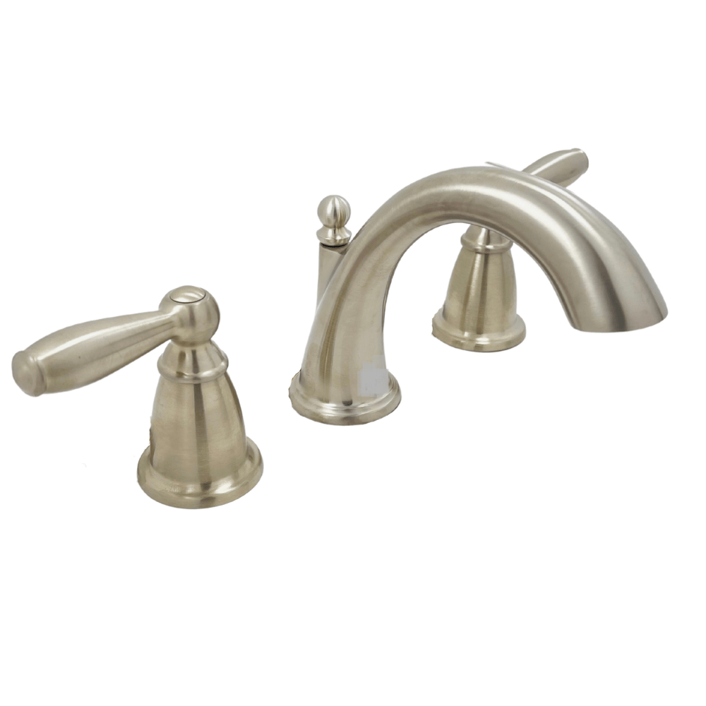 This two-handle widespread faucet trim kit features a high-arc spout and classic architectural styling, ideal for traditional bathroom vanities. The brushed nickel finish offers a warm metallic accent, while the spout provides a 5-inch reach and height for comfortable washing and rinsing. Lever handles rotate independently to control hot and cold water and can be spaced between 8 and 16 inches to suit three-hole sink configurations. Designed for use with a compatible rough-in valve (sold separately), this trim kit supports long-term flexibility and easy updates.