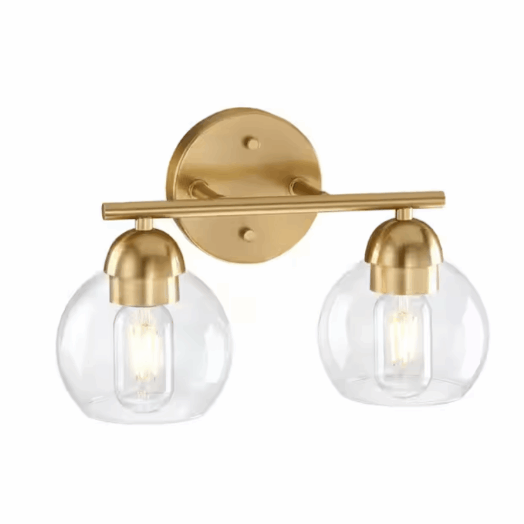 This elegant vanity light features a sleek metal lamp body paired with clear glass shades that beautifully reflect and diffuse light, creating a refined and luxurious glow. The gold finish adds a touch of sophistication, making it an eye-catching accent for bathrooms or dressing areas. With its modern yet timeless design, this fixture enhances your décor effortlessly—an easy way to elevate your space with a single update.