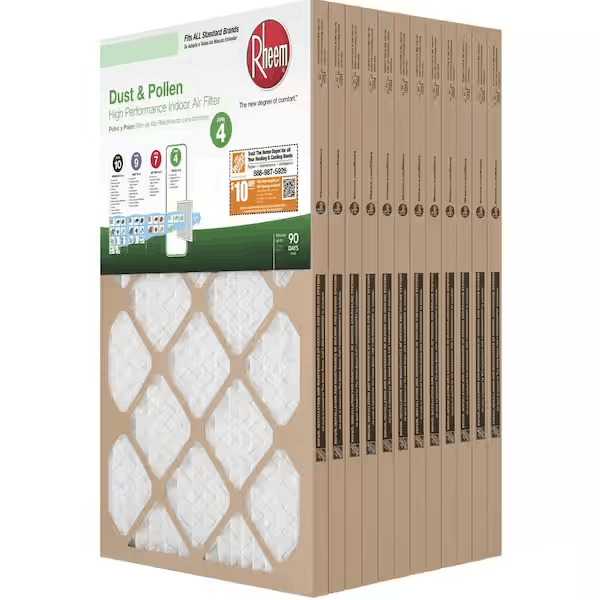 This MERV 8 Rheem Basic Household Pleated Air Filter improves your air quality. It features wire-backed pleats for up to 90-days of use and the standard size fits most HVAC systems. This filter effectively captures pollen, dander, dust and allergen particles in your home.