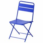 Bright blue folding patio chair with slatted design