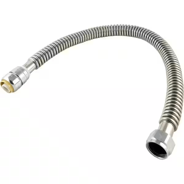 The SharkBite 1 in. x 1 in. FIP x 24 in. Water Softener Connector allows you to easily connect your Water Supply lines to your Water Softener Unit. After applying pipe thread tape to the MIP nipples on your water Softener, thread the FIP end of the Water Softener connector onto the tank and tighten with channel locks. Then simply push the SharkBite Push-Fit end onto Copper, PEX, or CPVC pipes and your Water Softener is connected. SharkBite Water Softener Connectors will decrease the amount of time and effort needed to install a Water Softener in your home and are the fastest way to complete your project.