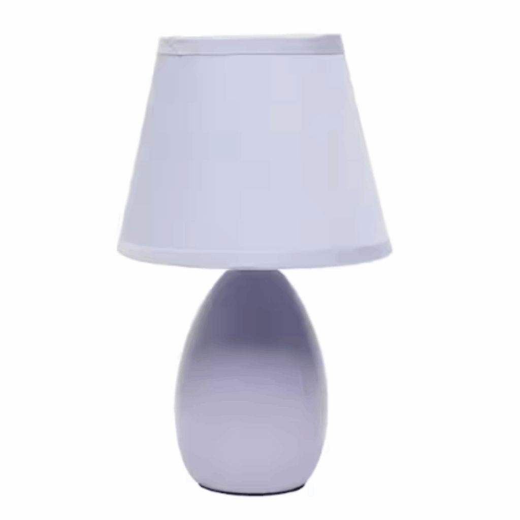 The Mini 9 in. Egg Oval Purple Ceramic Table Lamp offers an affordable and stylish solution for your lighting needs. Featuring an oval ceramic base and a matching fabric shade, this compact lamp adds a touch of elegance and practicality to any space. Whether placed in a living room, bedroom, office, kids’ room, or dorm, it’s the perfect lighting choice for any occasion.