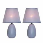 A lovely, inexpensive and practical table lamp set to meet your basic fashion-lighting needs. These mini lamps feature an oval shaped ceramic base and matching color fabric shades. Perfect for living room, bedroom, office, kids room or college dorm.