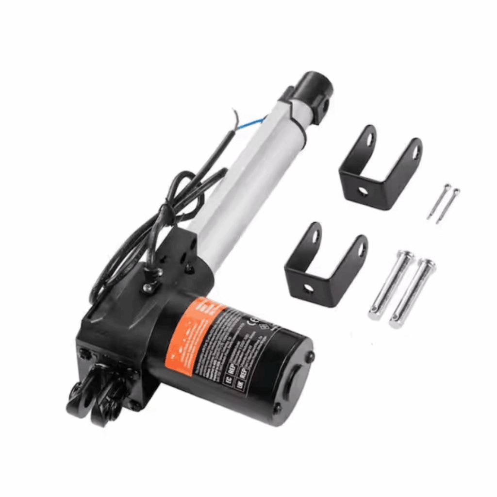 - Package includes: 1 linear actuator, 2 mounting brackets, 2 screw rods, 2 R-type pins.