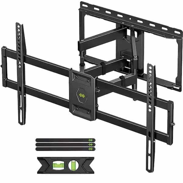 - Adjustable view comfortable: this TV bracket with dual articulating arms includes plus 5°/minus 15° tilt(tilting your TV upward to 5° and downward to 15°), minus/plus 45° swivel( maximum swivel angle depends on your TV), leveling adjustment allows the post-installation TV adjust the leveling angle within plus/minus 3° all these will make your TV adjustable and better view based on your seat in the room
