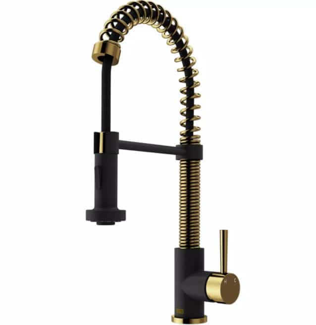 The pull-down, dual action spray head on the VIGO Edison Pull-Down Spray Kitchen Faucet allows for your choice of aerated flow or powerful spray for all your modern kitchen needs. The 360° swivel spout extends up to 30 in. and its spiral details and solid brass construction make it a highly functional and beautiful statement piece. Install the VIGO Edison Kitchen Faucet in any kitchen for an instant update.