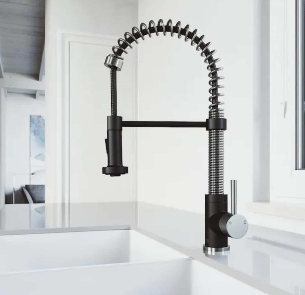 The pull-down, dual action spray head on the VIGO Edison Pull-Down Spray Kitchen Faucet allows for your choice of aerated flow or powerful spray for all your modern kitchen needs. The 360° swivel spout extends up to 30 inches, and its spiral details and solid brass construction make it a highly functional and beautiful statement piece. Install the VIGO Edison Kitchen Faucet in any kitchen for an instant update.