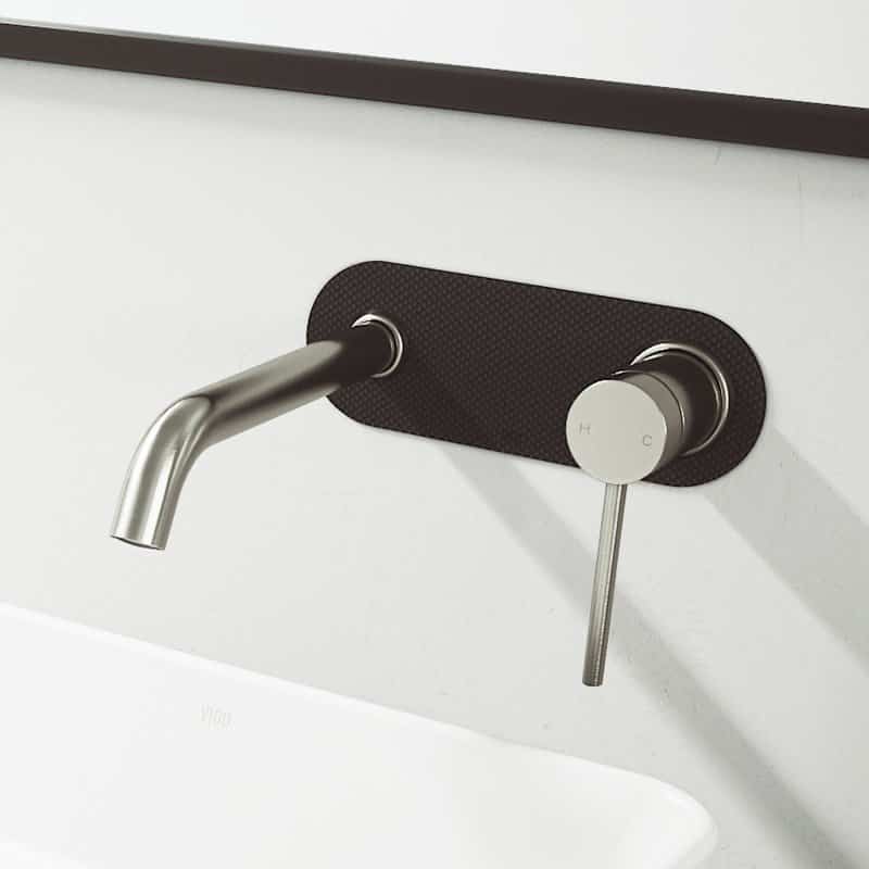 Turn heads as you turn on the water. An ode to NYC’s Upper East Side glamour, the VIGO Lenox cFiber© Wall Mount Bathroom Faucet introduces woven carbon fiber material into a wall-mount variation. Best known in the auto/aerospace industr ies for its exceptional strength to lightness ratio, this material is now proving its clout in home improvement. The cFiber© faceplate expertly repels rust and corrosion, making it ideal for areas exposed to water and cleaning products. Its lightweight composition makes installation on the wall above your sink effortless.The Lenox’s spout and single-handle lever, made from solid brass, come equipped with exceptional hardware and a premium finish. Get ready for the revolution of bathroom faucets with the VIGO Lenox cFiber©.