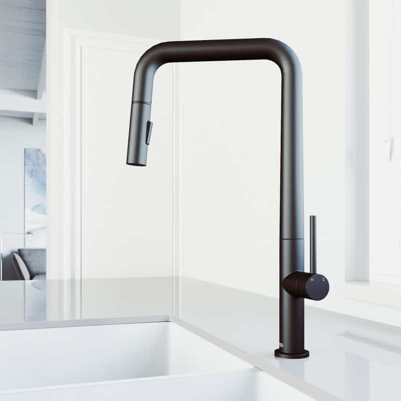 Smooth texture and unexpected dimensions highlight the modern elegance of The Parsons Pull-Down Kitchen Faucet by VIGO. With European-inspired design details, The Parsons provides modern luxury with a touch of industrial-chic. A dramatic high arch adds dimension to its undeniably sleek construction. Delivering form and function in a way you have never imagined with innovative technology features; this kitchen faucet elevates your kitchen experience. Equipped with a dual-action spout, it works to deliver an aerated flow or a powerful spray of water. The Parsons puts your kitchen at the forefront of modern design.
