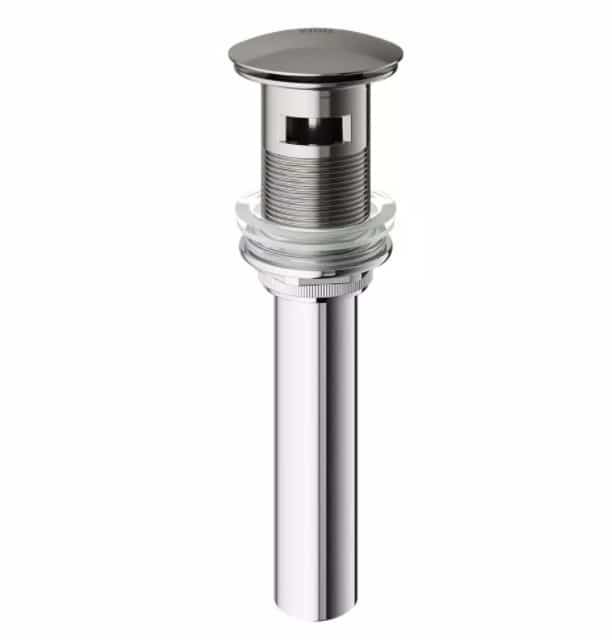 Never underestimate the impact of a great accessory. The VIGO Vessel Bathroom Sink Pop-Up Drain With Overflow in a Brushed Nickel finish instantly updates any bathroom sink setup. Built from solid brass for exceptional durability and finished to resist rust and corrosion, this pop-up drain is easy to clean and will remain a staple in your home for years to come. This model comes with an overflow hole and threaded nut to allow for diverted overflow water to drain down the pipe.