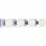 Brighten a space with this elegant indoor bath or vanity light bar, wall mount, or wall sconce. Designed with the look of Hollywood glam, it’s perfect for bathrooms, restaurants and many other areas. Its brilliant chrome finish resists rust. The fixture is suitable for damp or dry locations and is easy to install. This beautiful light is compatible with round G25 light bulbs (sold separately).