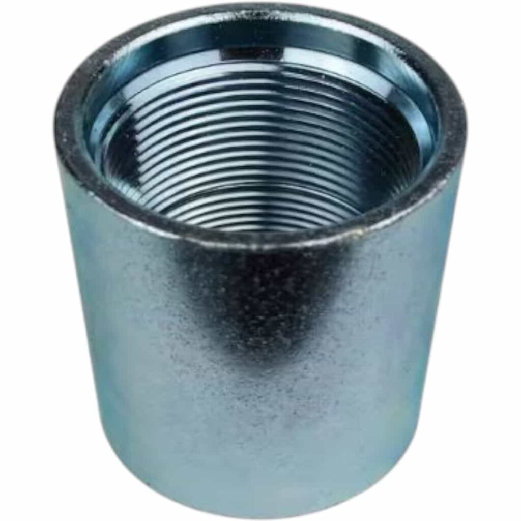 This drive coupling securely connects the well point to the drive pipe. Made from durable galvanized steel, it is built to handle the heavy force required when driving a well point into the ground. The design ensures a strong, tight joint at the pipe connection.