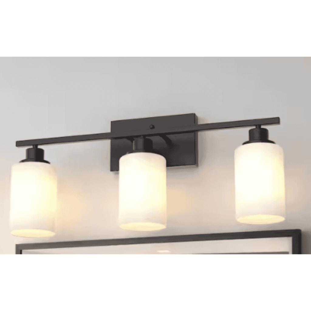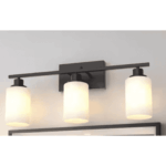 YANSUN HA-JQ01102CBL-1AP3 24 in. 3-Light Matte Black Industrial Bathroom Vanity Light with White Glass Shades,Wall Mount Over Mirror Light Fixture