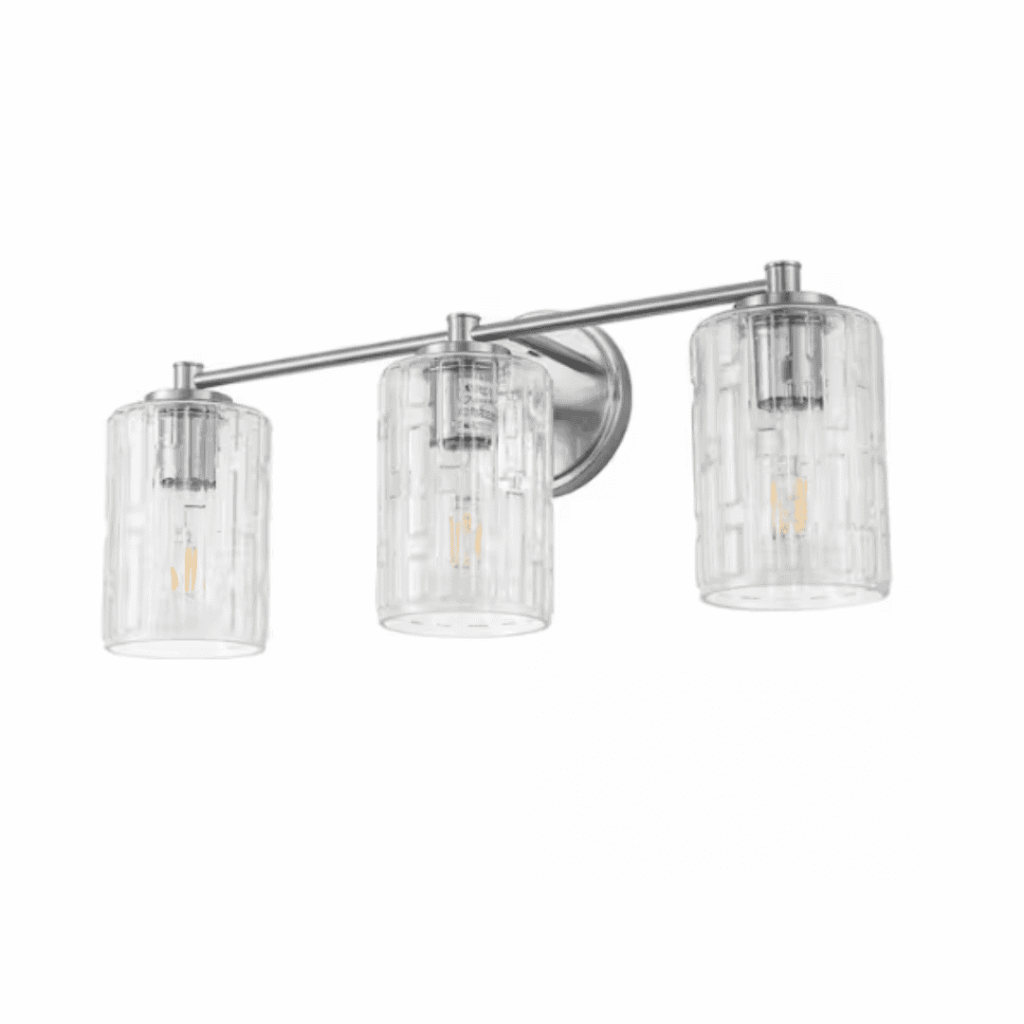 YANSUN HA-JQ29201CNK-1AP1 20 in. 3-Light Bathroom Vanity Light, Polished Nickel with Clear Seedy Glass Shades, Dimmable Fixture