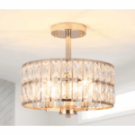 ZJX00038-3-FG-UL 12.59 in. Koyal 3-Light Round Gold Drum Chandelier Semi Flush Mount Ceiling Light with Clear Crystal Glass Drum Shade